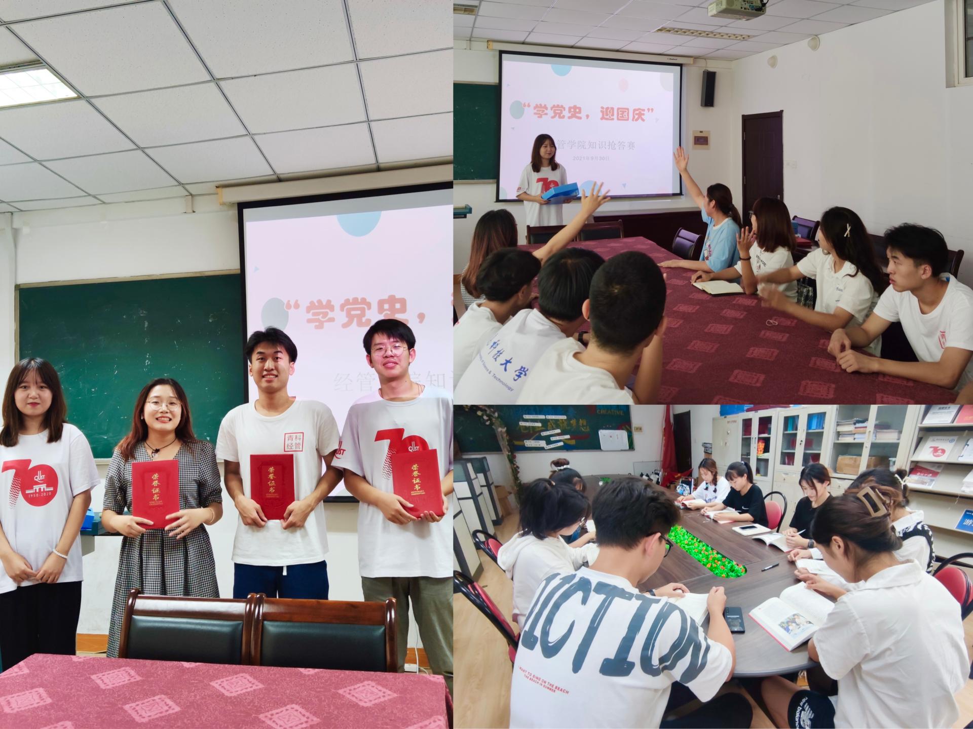 组织“庆祖国华诞,展经管风采”党史学习活动及“颂歌献祖国、礼赞新时代”红色经典诵读,分别从《党章中的党史》《颂党史、悟初心》《百年党史的伟大精神》《贯彻学习2021年习近平总书记在清华大学考察时讲话精神》四个专题纵深学习,对党史做到了“宣”与“讲”的联动,“理论”与“实践”的结合,进一步推进党史学习教育走深走实。