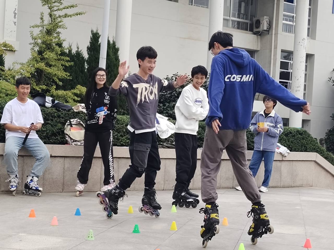 轮滑协会于11月9日下午在弘毅广场举行“轮转青春”速桩比赛。本次比赛由协会负责人李宛育同学筹备组织,比赛形式包括速桩组,刹停组,参赛人员覆盖各年级喜爱轮滑运动学生以及2021级轮滑协会成员。赛前,协会组织协会成员观看了由校轮滑协会表演的花样表演,随后进行趣味比赛以及热身活动。