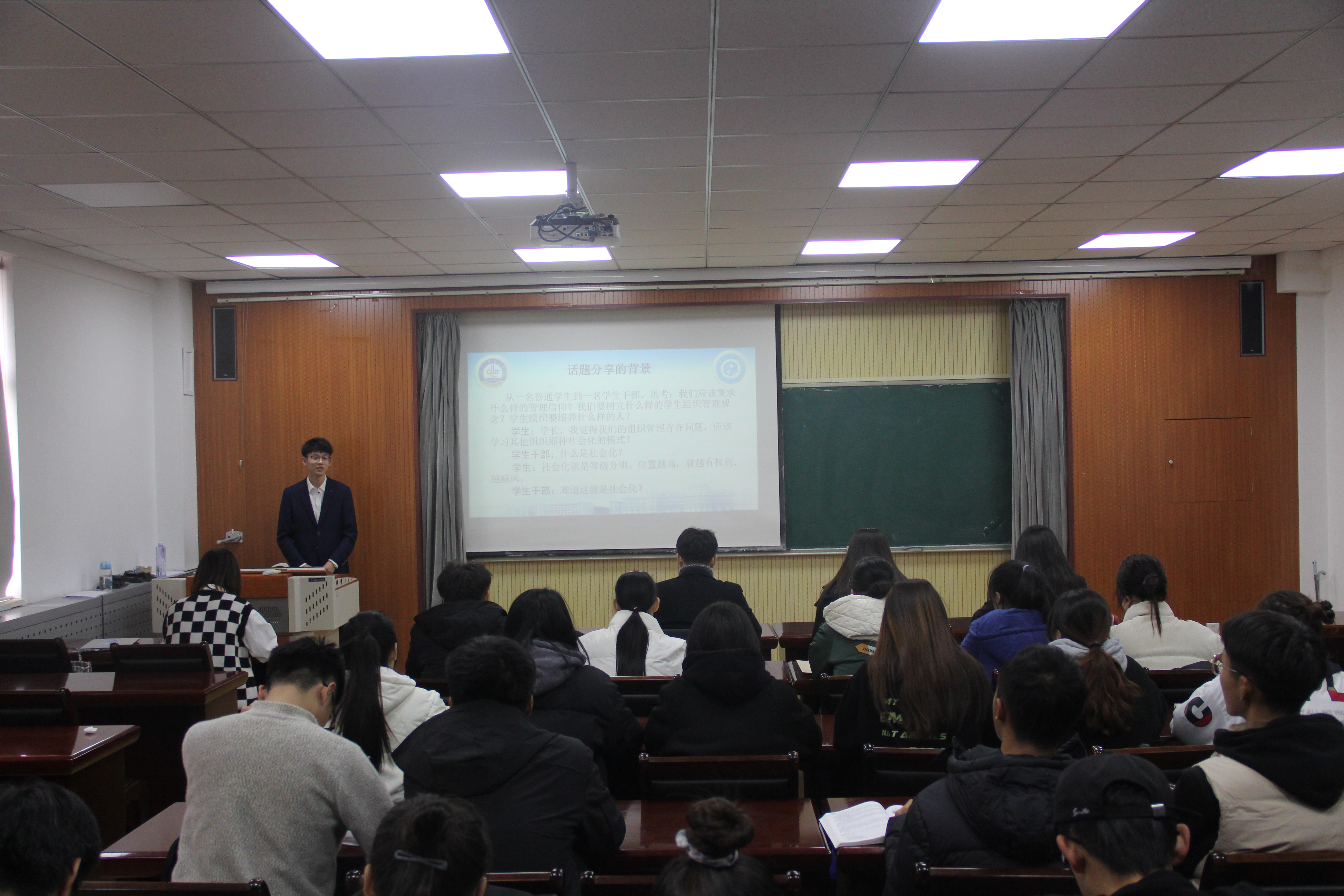 高广旭同学对学生组织管理这一话题进行了分享。从一名普通学生到一名学生干部,应该去思考:我们应该秉承什么样的管理信仰?我们要树立什么样的学生组织管理观念?学生组织要培养什么样的人?通过对学生组织管理的定义、任务、职能、角色和技能五个方面,对学生管理进行了细致的讲解和分享。我院学生会秉持着“一心双环”,“三方联动”的实践理念,做到校、院、班的联动管理。最后总结,成为学生管理者是为了组织理想与个人理想,为了组织发展与个人发展,为了阻止的管理实践和个人的管理实践。