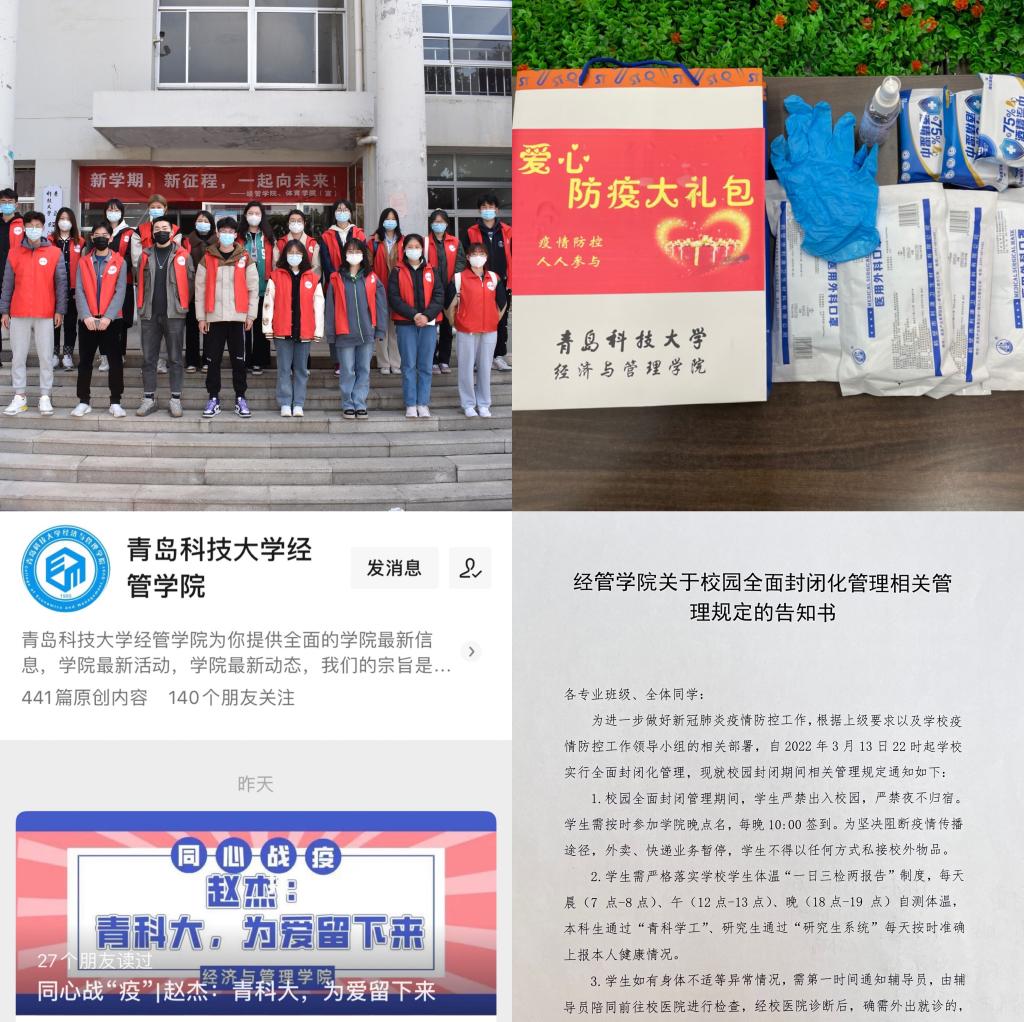官网、官微开设“同心战疫”专栏,多频次、高密度地开展疫情防控宣传教育工作,累计线上推送防疫宣教材料30余篇;将团学工作、学生服务拓展到宿舍、课堂、操场和食堂,把青年恳谈会开到宿舍。持续推进宿舍网格化管理工作落细,组建了一支由17名楼长、83名楼层长和344名宿舍长组成的网格员队伍,形成疫情防控信息直报机制,434名网格员持续坚守岗位,做到了事事、时时有回应,协助筑牢安全防线的同时,还参与到韦德国际