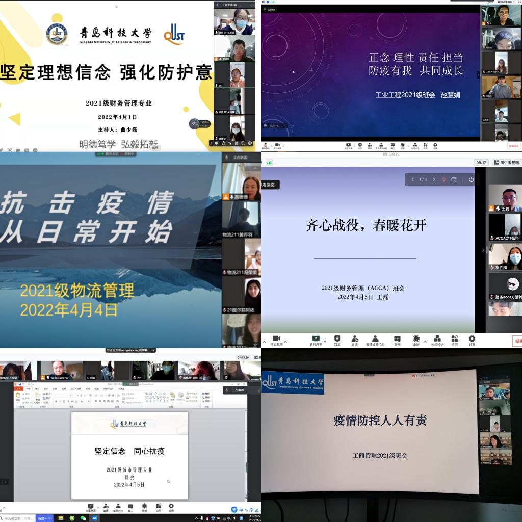 2021级充分发挥班主任育人作用,组织各专业班主任开展线上班会,各班主任立足相关专业学生特点及工作重点,将疫情防控与思想政治教育相结合,缓解疫情背景下同学们的紧张焦虑情绪,深切关怀学生的身体心理健康和学业状况,引导大家凝心聚力打赢疫情防卫战。