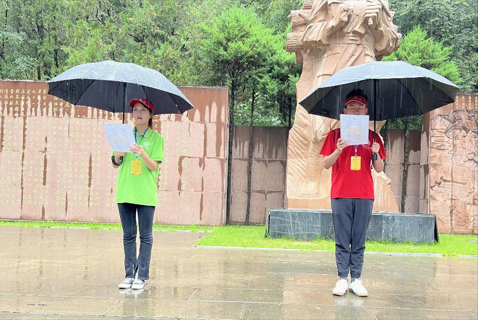 2022年盛夏,青岛科技大学赴延安“时代印记”红色旅游经济调研团赶往延安,与全国各地兄弟院校共赴一场红色的约定。7月22日,蒙蒙细雨之中,学员齐聚《为人民服务》讲话纪念广场,我非常荣幸能够在本次活动中担任领诵员,带领全体实践团学员“红色讲台”前齐整列队、高声诵读毛主席在张思德同志追悼会上发表的文章——《为人民服务》。党的百年历史,就是党与人民心连心、同呼吸、共命运的历史。而“为人民服务”像一根红线贯穿我们党近百年的历史,激励着一代又一代中国共产党人前赴后继、英勇奋斗。