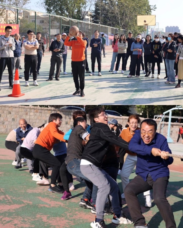 工会组织“喜迎二十大 建功新时代 特色鲜明走在前 强身健体做贡献”为主题的教职工趣味运动会在崂山校区运动场胜利召开。