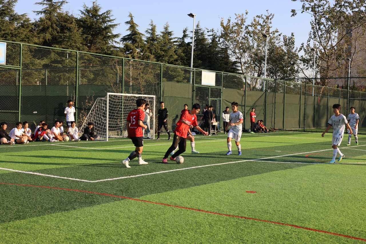 ,比赛进行中,场上队员激烈交锋,场下加油呐喊不绝于耳。比赛现场异常激烈,绿茵场上红白双方秉持友谊第一,比赛第二的体育理念,在激烈的技术交流中,经管最终以落后三分惜败,拉下第三场小组赛的帷幕。比赛是体育精神与友谊的桥梁,相信经管学子在赛后的复盘中总结经验,再接再厉!