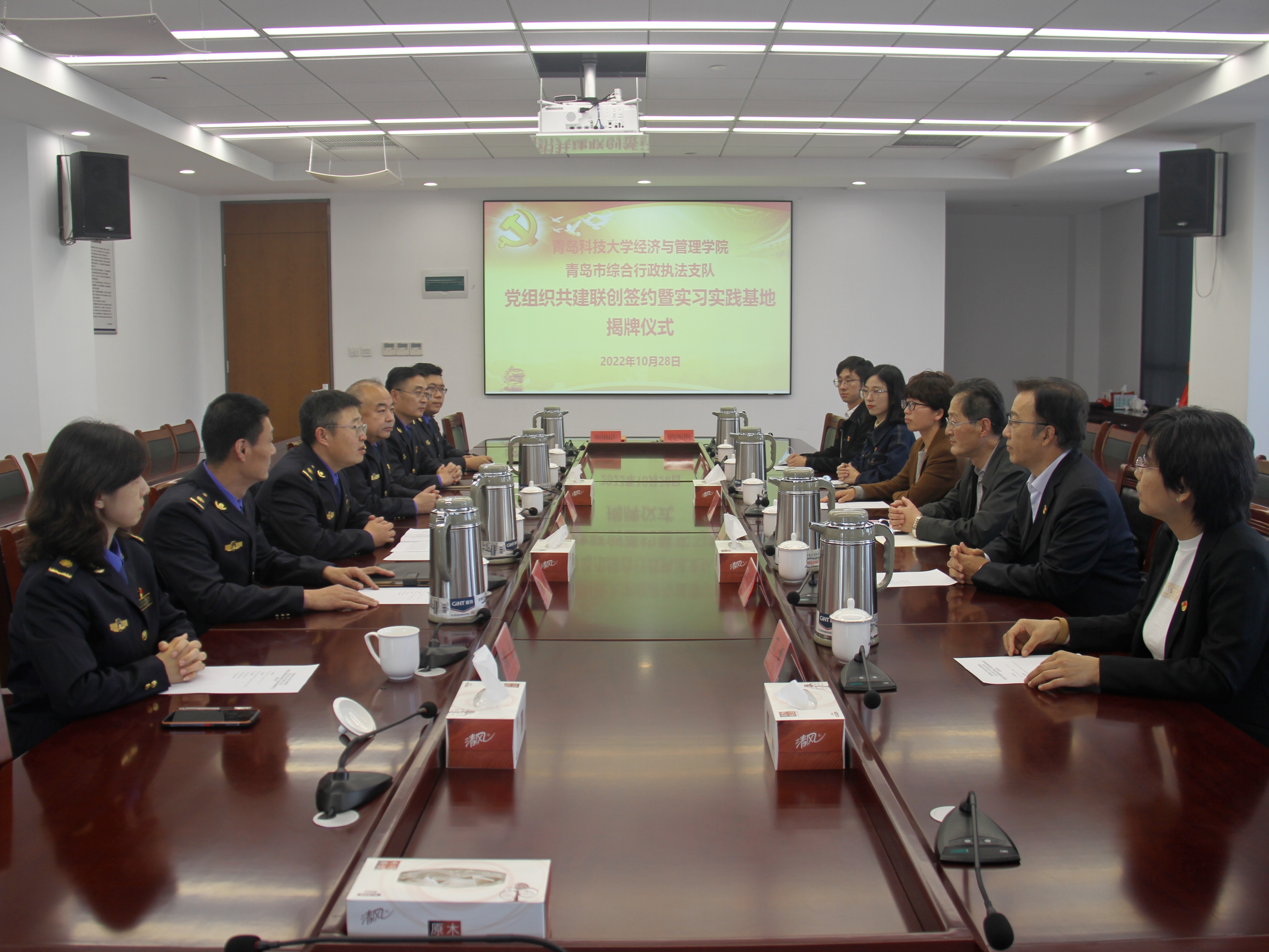 党委书记李德成、副院长宫攀,青岛市综合行政执法支队党委书记、支队长王博彤、副支队长任树睿及双方有关负责同志参加签约揭牌仪式。