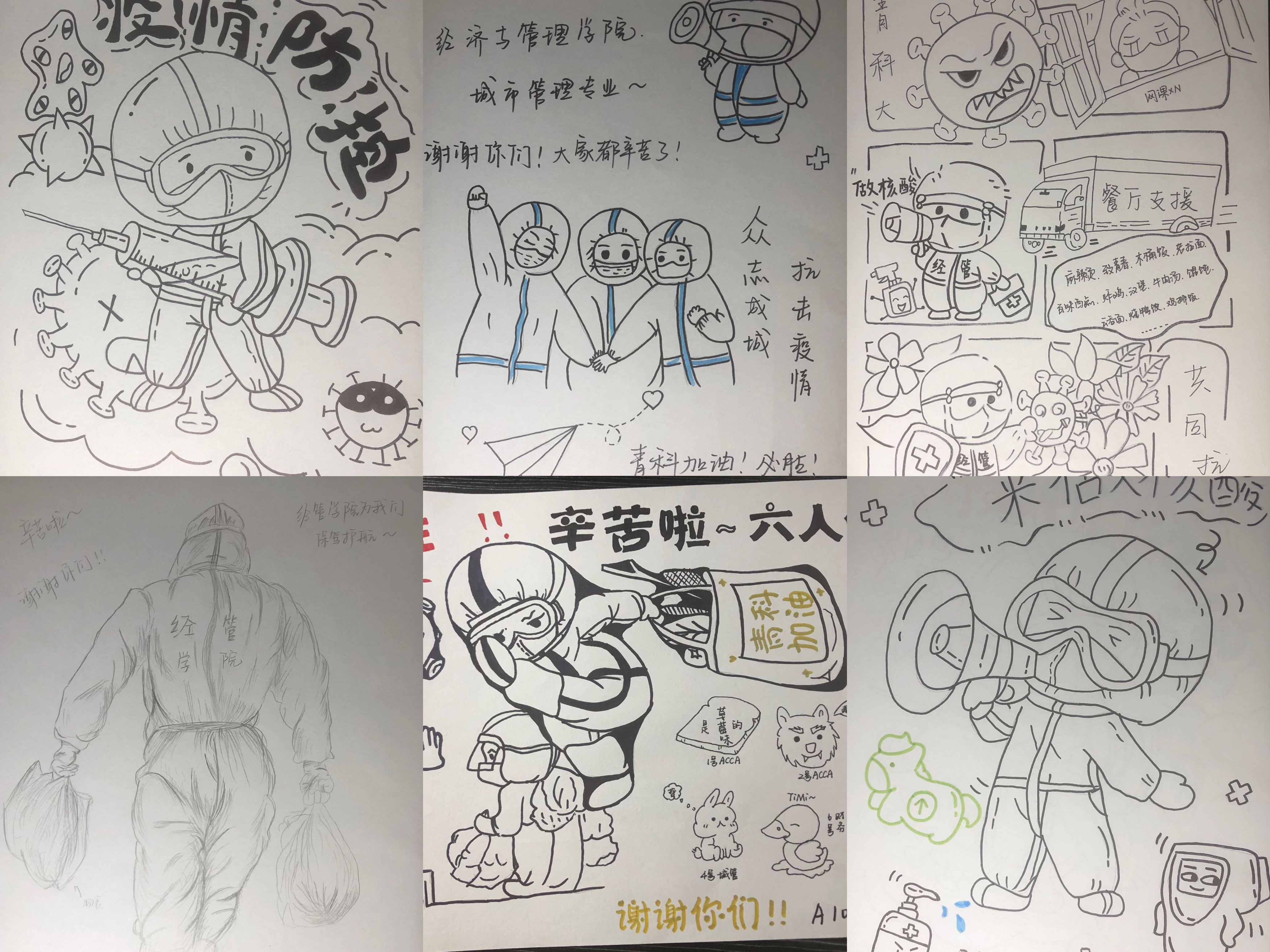 笔墨绘大爱,同心抗疫情。组织开展"翰墨寄情 同心抗疫"文创活动,通过征集书画作品引导学同学们以飘香翰墨书写无言感激,以手中颜料献礼志愿"大白",通过一笔一划表达对战“疫”英雄的敬意与祝福,展现战胜疫情的信心与决心。