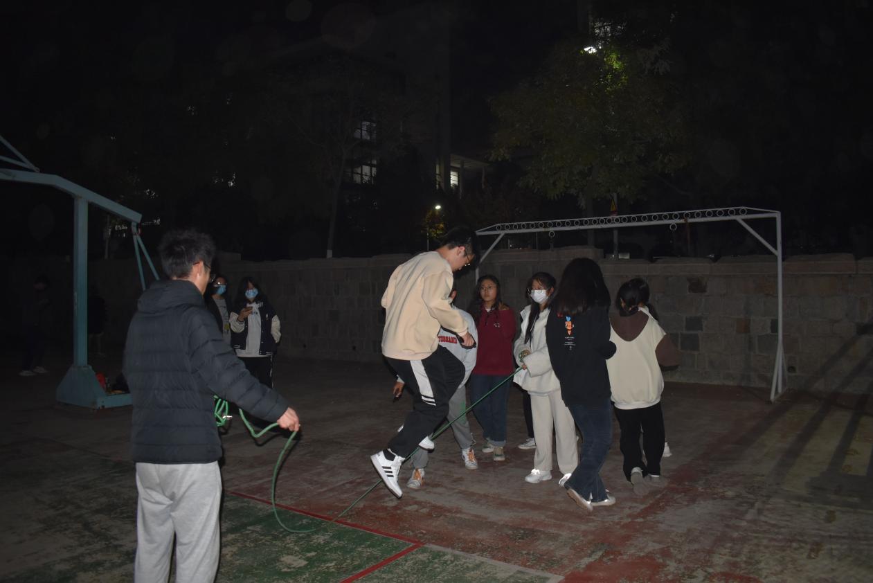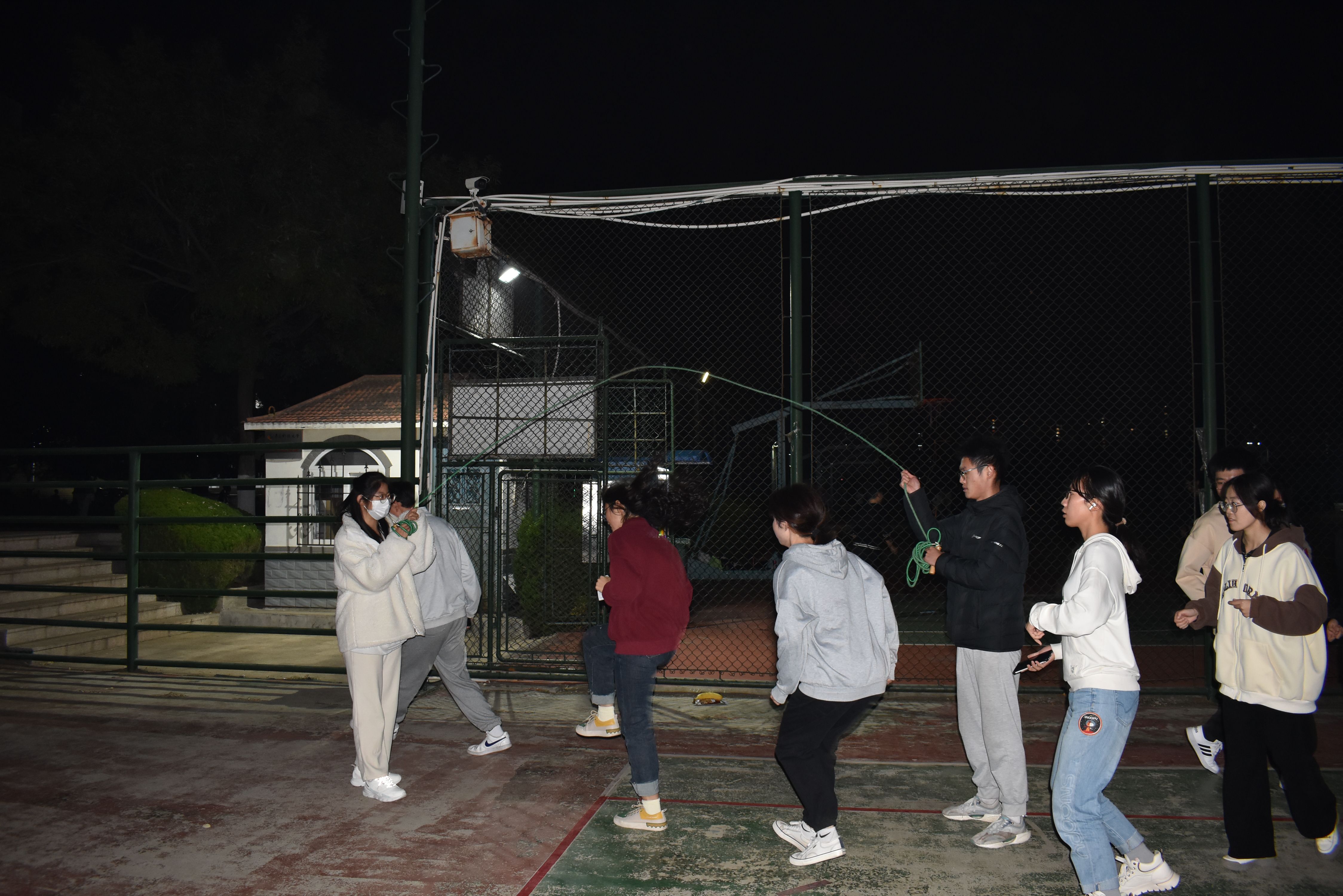 为了进一步弘扬体育运动精神,培育学生坚韧不拔的毅力,丰富校园文化生活,于11月9日晚上8点在南苑篮球场举办了跳绳训练。