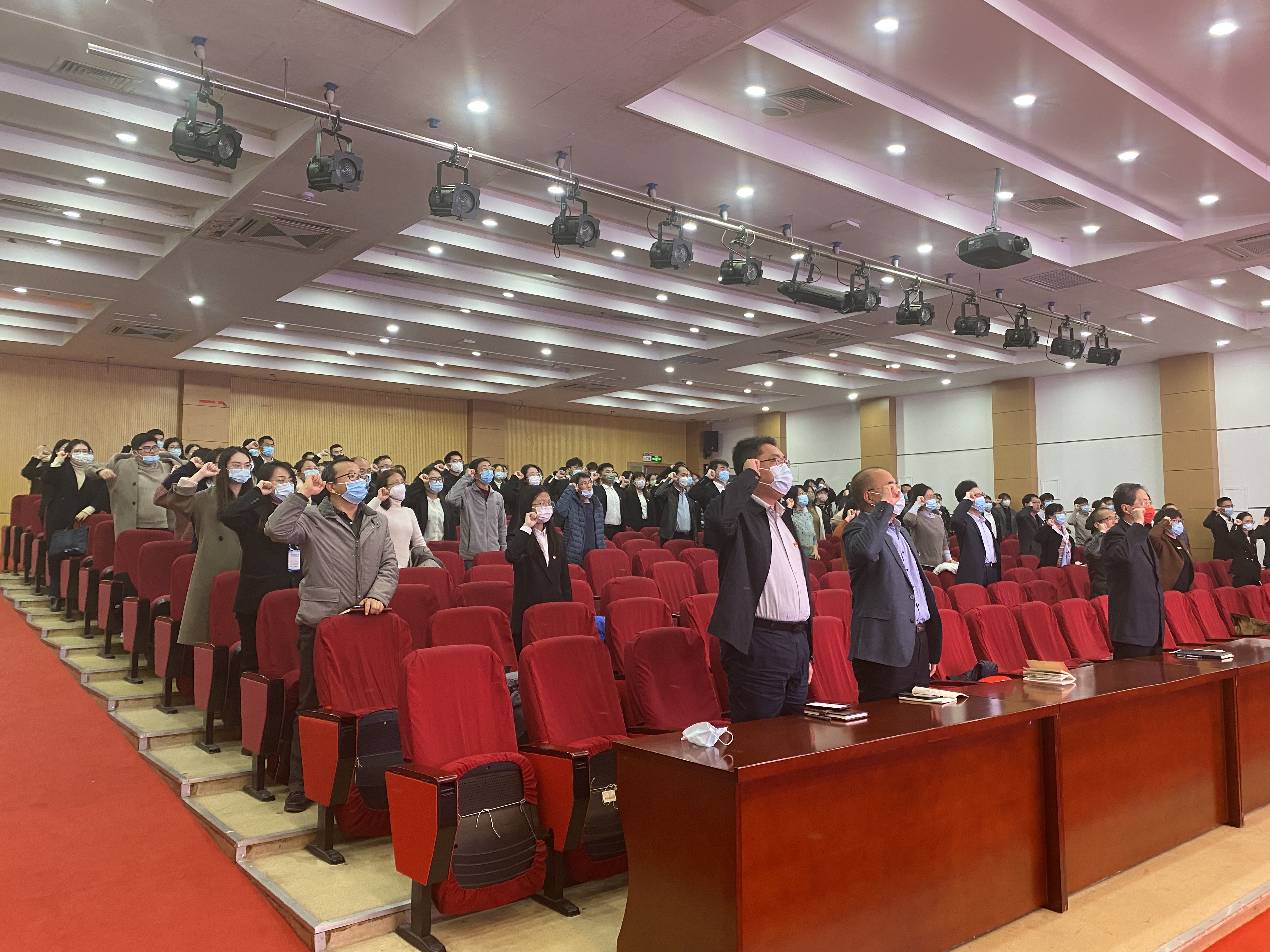 关于开展“学思践悟凝共识 强国筑梦再出发”学习宣传贯彻党的二十大精神专题读书班的通知》,并带领全体参会师生党员现场宣誓,重温入党誓词。全体师生党员举起右拳,庄严宣誓,现场气氛热烈。