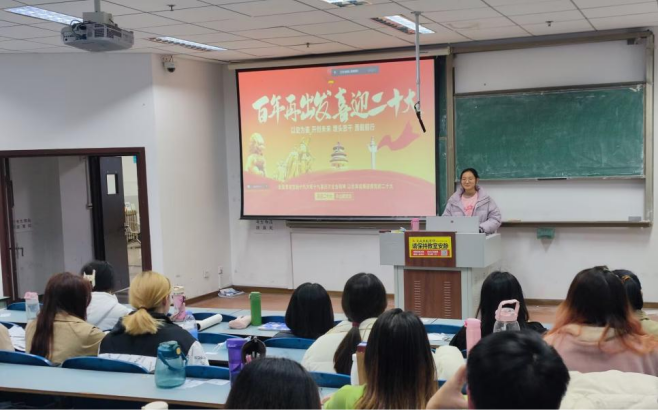 全体同学集中观看习近平总书记代表第十九届中央委员会所作报告的视频,青年学生们一边认真聆听,一边仔细记录学习笔记。团支部书记张欣宇阐述了党的二十大主题与《高举中国特色社会主义伟大旗帜、为全面建设社会主义现代化国家而团结奋斗》报告内容的结构,带领支部团员详细学习了二十大报告的内容。