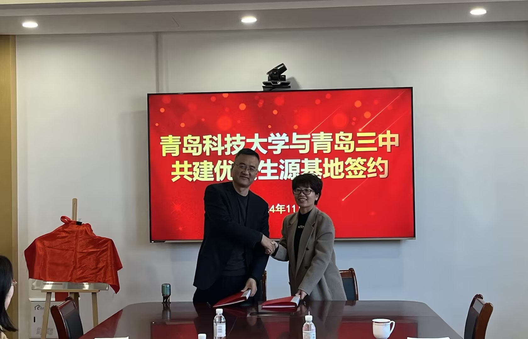 与青岛三中共同签署优质生源基地协议并举行揭牌仪式。此次活动标志着两所学校在人才培养、资源共享等方面将展开全面合作,共同为培养更多优秀人才而努力。