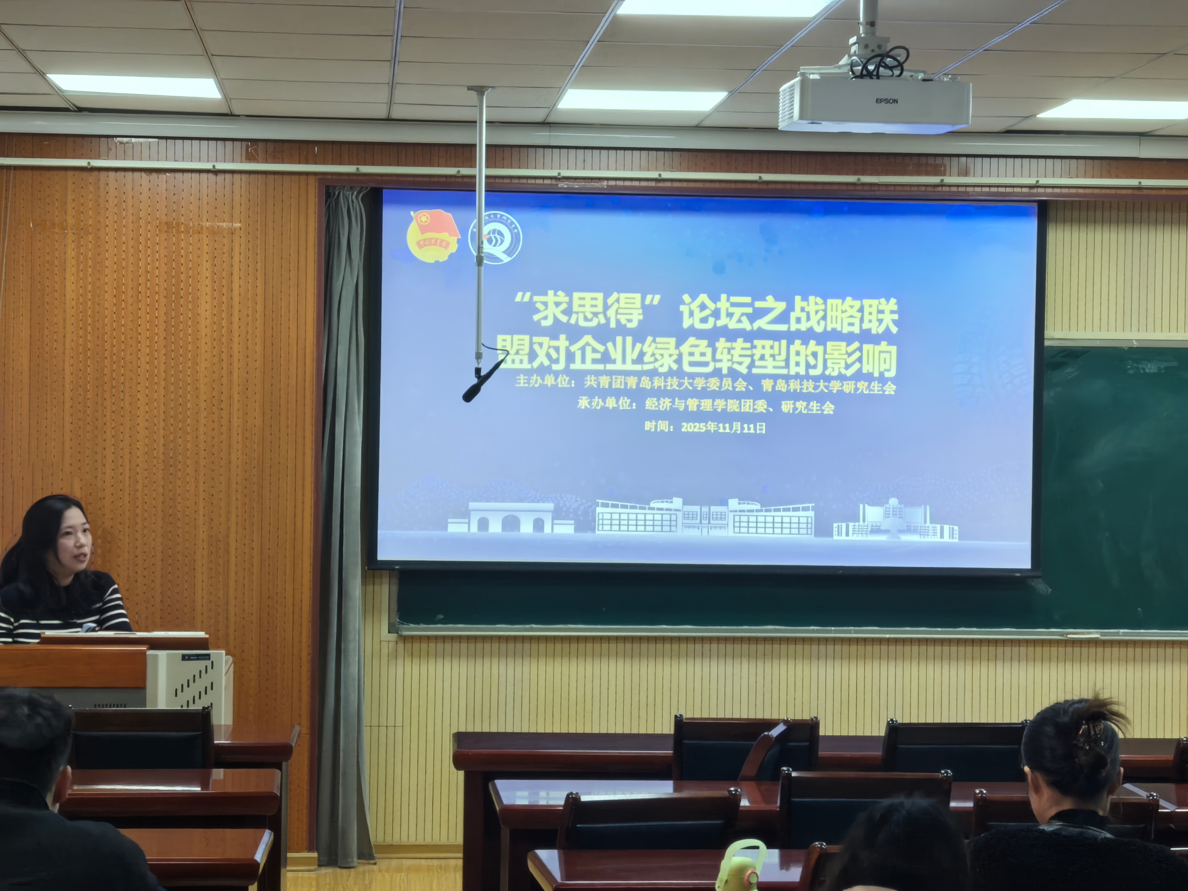 团委在经管楼505举行本学期第二次“求得思”论坛,论坛以“战略联盟对企业绿色转型的影响”为主题,邀请了韦德国际