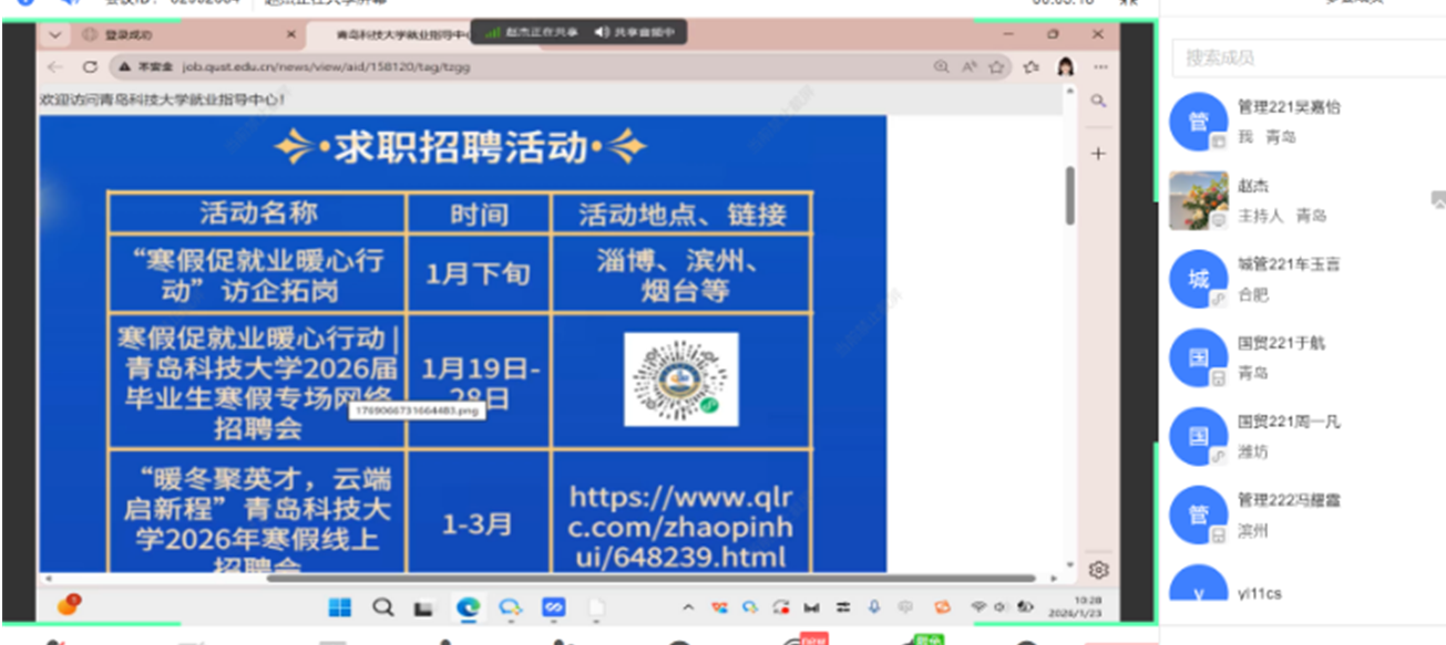 寒假就业服务举措,系统讲解《青岛科技大学2026年寒假就业服务指南》,围绕三方协议签订、违约处理、异地求职住宿补贴等问题逐一耐心解答,同时重点强调了求职安全,提醒大家警惕就业欺诈、传销等风险,保护个人信息与财产安全。针对家庭经济困难、就业困难等特殊群体毕业生,赵杰表示韦德国际