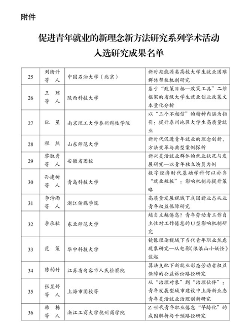 中国青少年研究会申报的“促进青年就业的新理念新方法研究系列学术活动”获国家社科基金立项资助(批准号:25SGD034,项目类别:学术会议类)。为扩大系列学术活动影响,推动系列学术活动落地见效,面向党政有关部门、共青团系统、高等院校、社科院所、企业和相关社会团体中的专家学者、实务工作者和研究人员公开征集以新理念新方法促进青年就业的实践创新案例和理论研究成果。自征集启事发布至征集活动结束,共征集相关研究成果228个。经专家评审,最终遴选出69个研究成果。我校成果入选论文和研究报告类优秀成果。