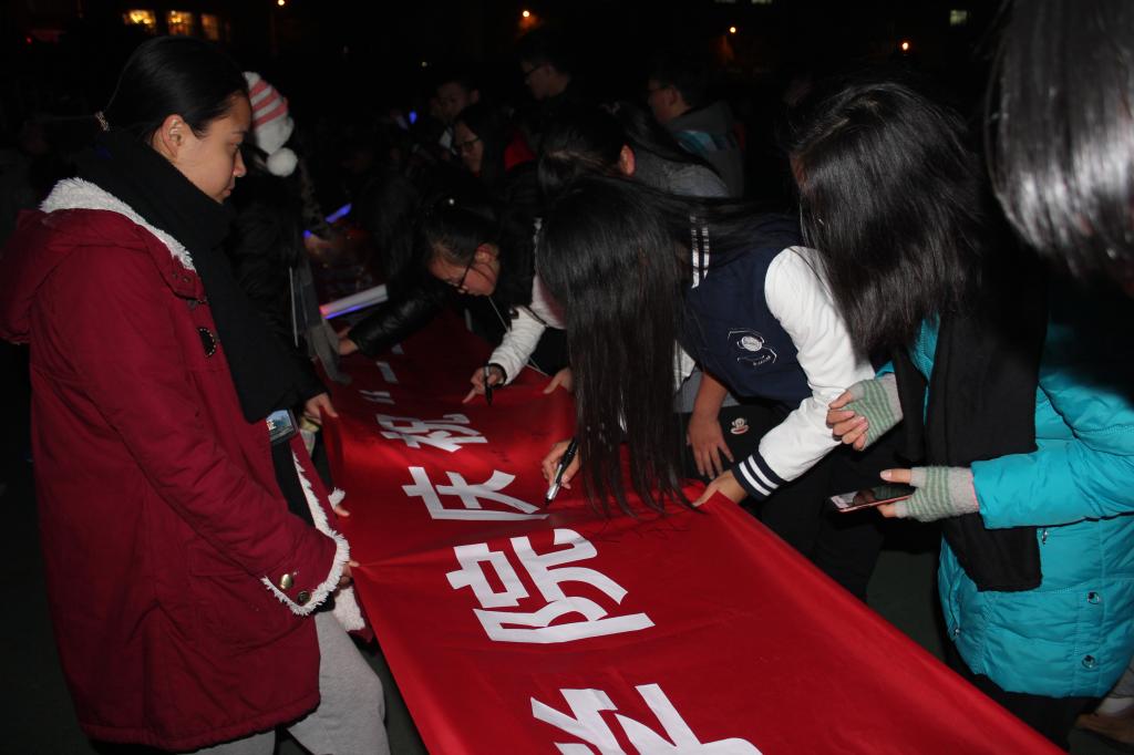 活动开始后,同学们在院学生会体育部干事的带领下开始了绕操场三圈的夜跑,夜跑过程中,不时有同学参与进来,同学们手握荧光棒,充分享受夜跑带来的激情,把整个操场装点成一个荧光闪耀的欢乐海洋。夜跑结束后,所有同学回到起点,虽有些许劳累,但依旧挥舞着荧光棒,热情不减,纷纷在夜跑横幅上签名留念。