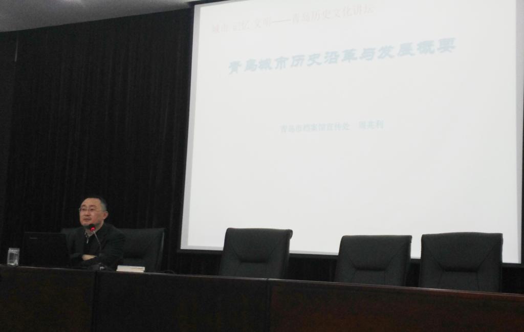 5月3日下午,在学生参观完青岛市档案馆后,档案馆宣传处处长周兆利于档案馆会议室为学生作题为“青岛城市历史沿革与发展概要”的报告,他将青岛建置约120年的历史,分为六个阶段,从青岛设防、德日占领时期一直到改革开放后,在不同的历史背景下概括青岛城市的形成及发展,从经济、政治、文化、交通等方面分析青岛城市发展的优势及问题,同时指出未来青岛的发展空间。以青岛为特例,使学生体会到城市发展所经历的历史进程,对规划城市,定位城市发展方向起到了示范作用。