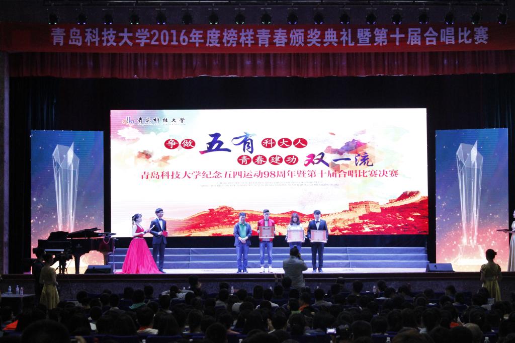 为纪念五四运动98周年,弘扬五四精神,展现在校学生昂扬向上的精神面貌,5月2日晚青岛科技大学2016年度榜样青春颁奖典礼暨第十届合唱比赛于四方校区西礼堂成功举行。