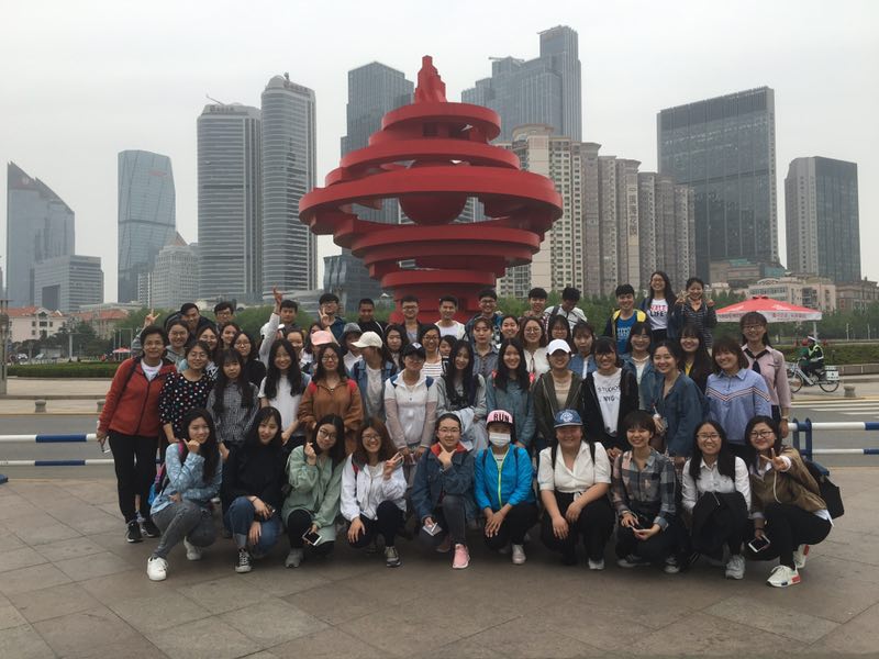 沿海而行,师生们来到新旧城区转换的中心点——五四广场。面对着"五月的风",感受热血青年的爱国热忱,体会历史与时尚并存的都市魅力。