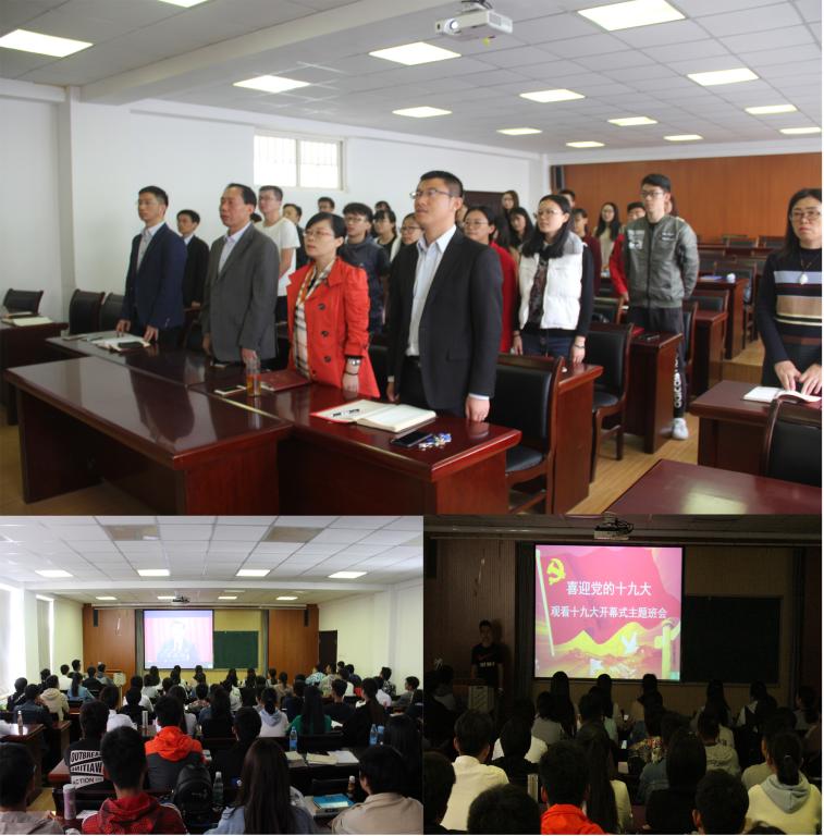 在弘毅楼E-106、504和505会议室召开十九大主题班会,组织2017级新生观看了十九大开幕式回放。观看过程中,同学们全神贯注,不时报以热烈的掌声。经过此次主题班会,同学们亲身体会到了党和国家的飞速发展,进一步坚定了为中国特色社会主义事业贡献光和热的信念。