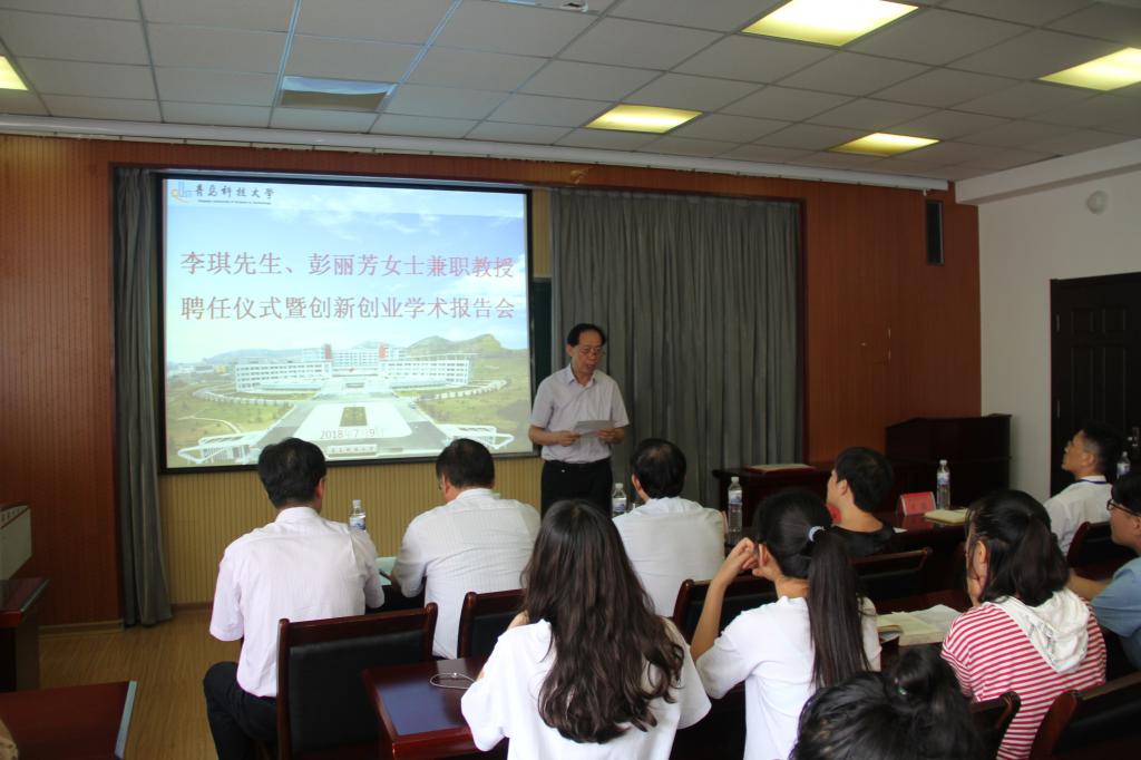 院长王志宪宣读了《关于聘请李琪、彭丽芳同志为青岛科技大学兼职教授的决定》,王志宪在致辞中对两位老师表示热烈欢迎,希望两位老师为青岛科技大学的创新创业发展献计献策,为山东经济和社会发展培养更多、更优秀的人才。