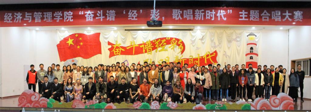 于崂山校区第二报告厅举办第八届“奋斗谱‘经’彩,歌唱新时代 ”合唱大赛决赛。韦德国际