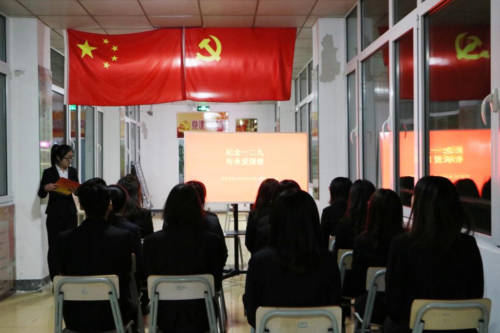 学生党支部在“领航”党建活动室开展“铭记一二•九,传承爱国情”主题党日活动,通过观看纪律片和朗诵的形式回顾历史,缅怀先烈,学习革命烈士甘于奉献、不怕牺牲的大无畏精神。学生党员徐敏表示,我们要永远铭记一二九这个日子,勿忘国耻,砥砺前行,让爱国从今天做起,从点滴做起,学好本领,为实现中华民族的伟大复兴而努力。