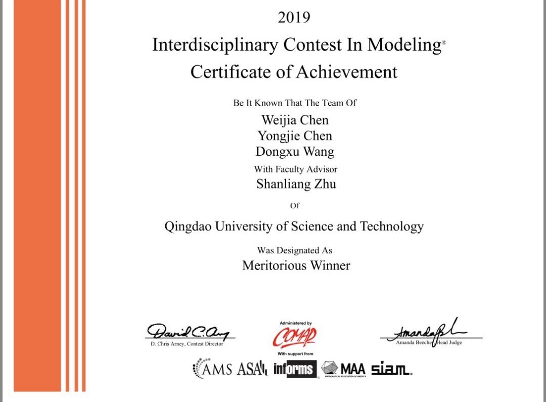 近日,青岛科技大学组织学生参加的2019年美国大学生数学建模竞赛成绩揭晓,学校44支参赛队伍中,获得国际一等奖(Meritorious Winner)8项,国际二等奖(Honorable Mention)11项,国际三等奖(Successful Participant) 24项。尤其值得一提的是,由韦德国际