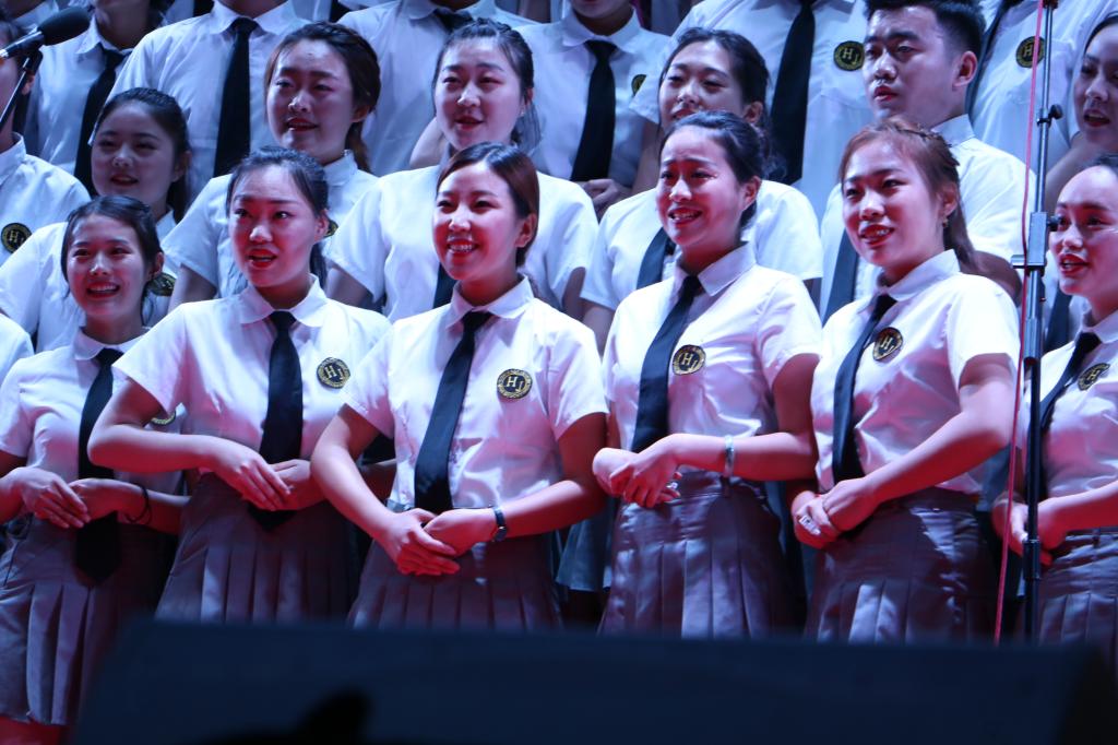 领导、全体老师、全体学生会成员和所有合唱团同学们鼓起干劲,将艺术水准与演出质量放在第一位,在短短十天的时间里加班加点,研究细节,完善修正,重组队伍,付出了加倍努力。从简单的正音准、排队型到复杂的声部调整,从整体的乐器伴奏与声音语调,到细节的面部神态与走路站姿,从指挥、领唱、伴奏,到每一名合唱队员,自始至终,所有人都倾情投入,全力以赴。历经近两个月共27次的辛苦排练,几百次的用心演唱,他们完美逆袭,绽放出历经磨砺后耀眼的光芒,宣布成绩得那一刻,老师同学们热泪盈眶,发自内心的一声声“经管威武”使经济韦德国际