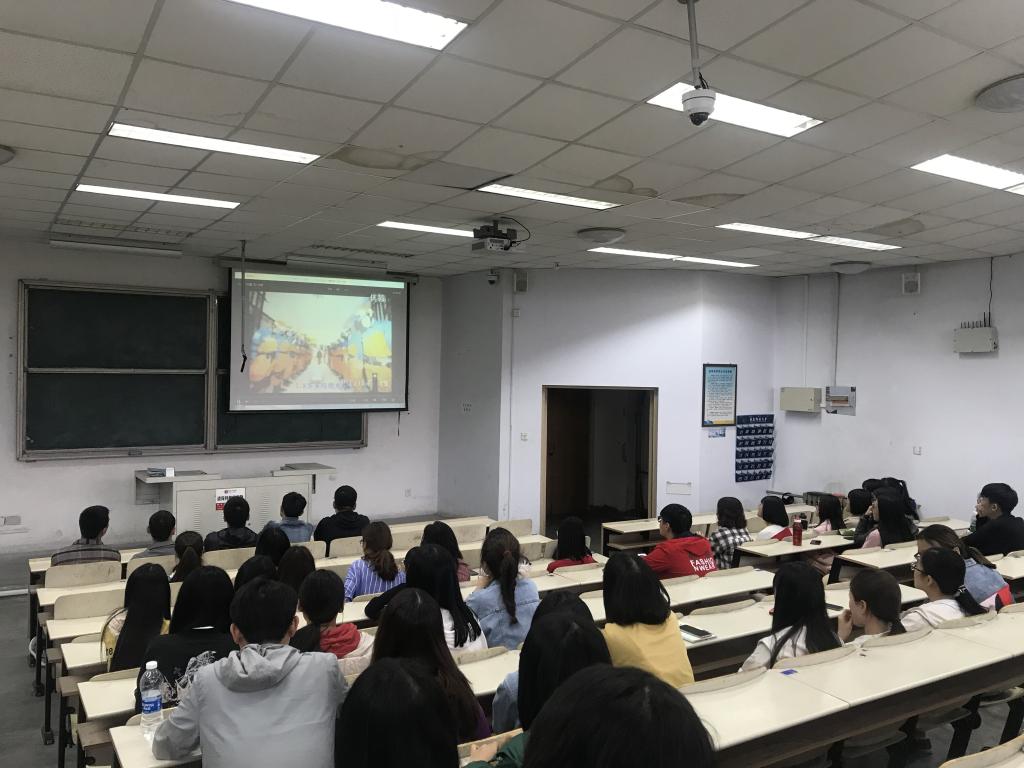 组织大一到大三学生课前五分钟观看纪念汶川地震11周年短片,通过影视资料重温灾难时情景,使学生体会中国人民万众一心、众志成城的精神。国贸161班陈永洁说:"看着屏幕里的汶川从一片废墟到高楼林立,看着那里的人民从消沉失落到重拾生活,我深受感动,透过他们,看到了中国人民勇往直前、涅槃重生的力量。"