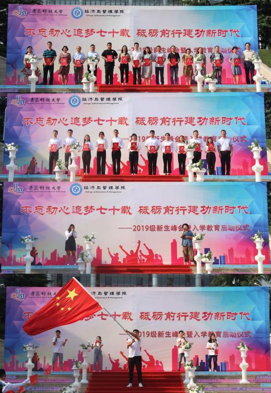 入学教育以“不忘初心追梦七十载 砥砺前行建功新时代”为主题,紧扣新时代、祖国七十华诞的时事热点,结合“科大精神”、“橡胶品格”和“五有理念”,为新生上好爱国爱校教育的第一课。仪式上,院长、教师代表、辅导员分别寄语, 海选新生代表上台发言,在校生代表唱响青春,教师代表、学生会共唱《我爱你中国》,一系列的迎新活动营造了浓厚的文化氛围,在每个学生心中撒下科大文化的种子,引领学生做有理想、有本领、有担当的时代新人。
