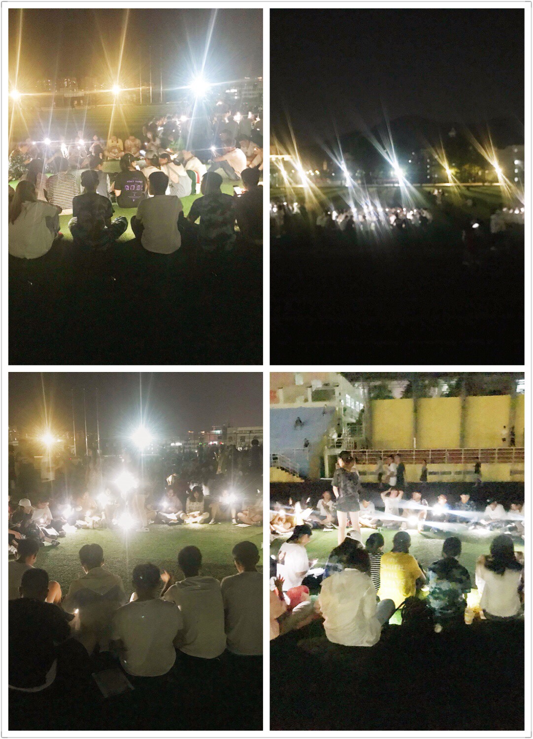 在军训之余,针对2019级新生开展入学教育系列活动——学唱校歌。9月4日晚,韦德国际