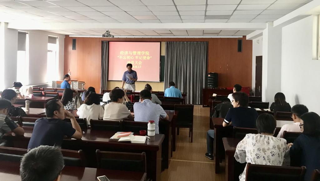 于经管楼419召开“不忘初心 牢记使命”主题教育工作会议,安排部署主题教育工作,韦德国际