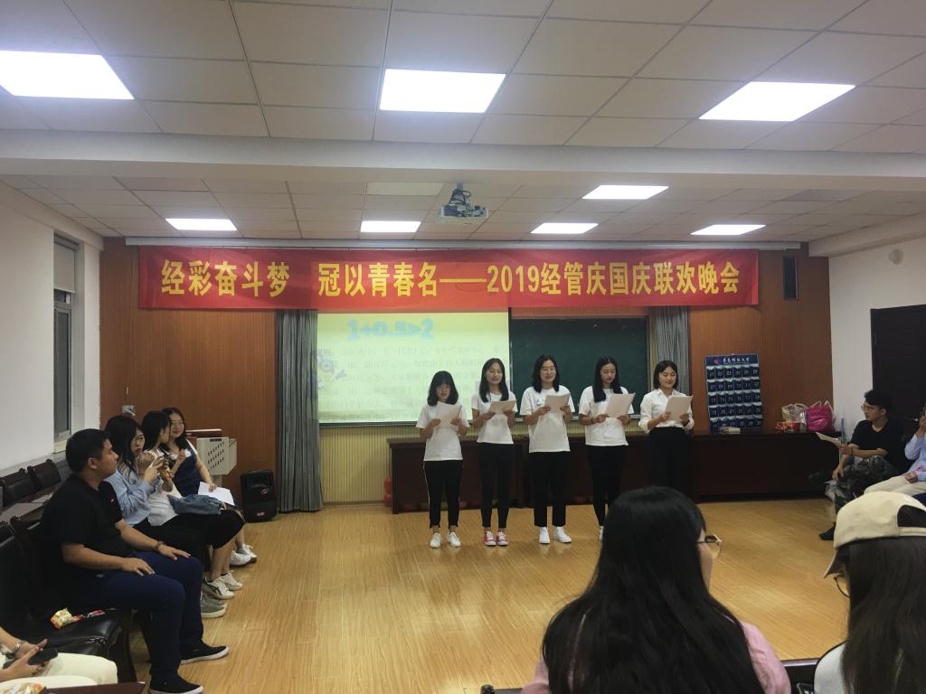 研究生会主办的“经彩奋斗梦 冠以青春名”2019经管研究生庆国庆联欢晚会于经管楼419室举行。韦德国际