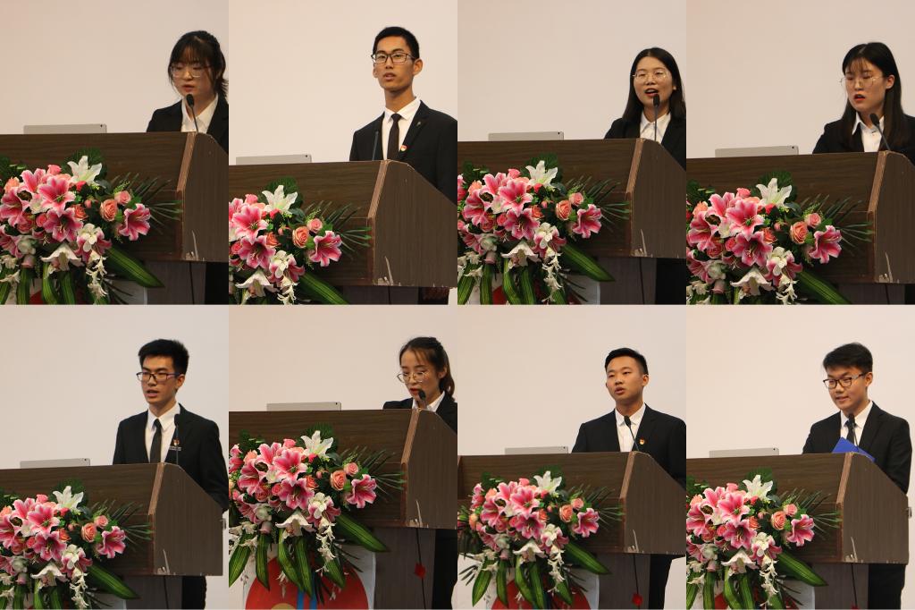 关于表彰2018-2019学年学风建设先进集体先进个人的决定》,学生代表姜名圻宣读题为《养成良好学习习惯,铸就人生青春理想》的倡议书。