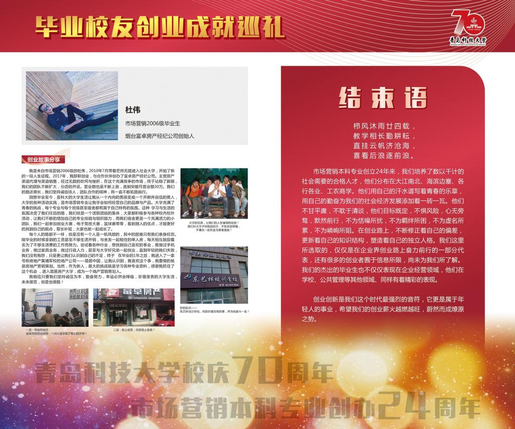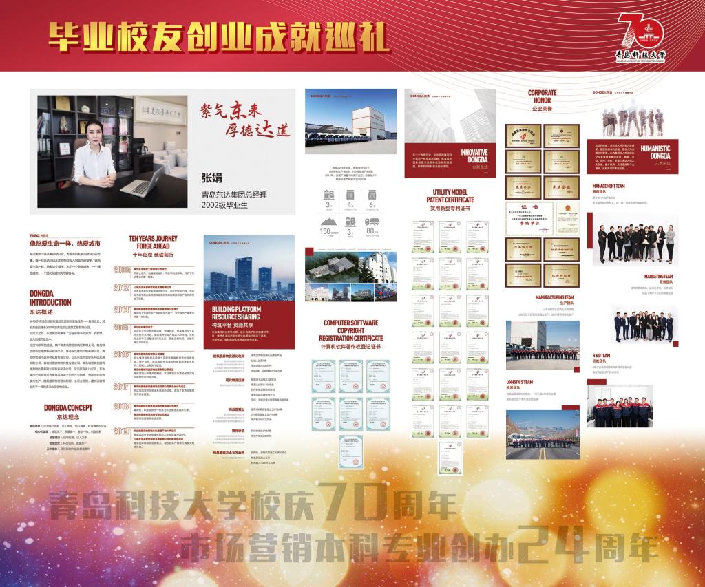 市场营销系举办了毕业校友创业成就展览,收集了历届校友创业创新活动取得杰出成就的部分素材,制作展览栏于弘毅楼门口进行集中展示。