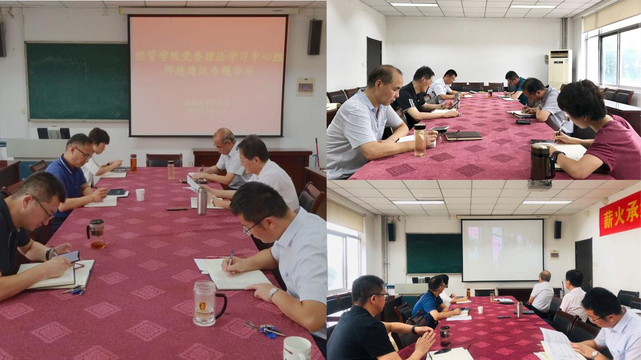 组织全体教师深入学习领会习近平总书记在全国教育大会、全国高校思想政治工作会议和学校思想政治理论课教师座谈会上的讲话精神,观看《闪亮的名字2020最美教师发布仪式》,对标“四有好老师”“四个引路人”“四个相统一”等要求,查摆不足,明确方向,细化规划,进一步提升立德树人的责任意识。组织教师重温《中共中央国务院关于全面深化新时代教师队伍建设改革的意见》《教育部关于建立健全高校师德建设长效机制的意见》《新时代高校教师职业行为十项准则》《教育部关于高校教师师德失范行为处理的指导意见》《青岛科技大学教师职业道德规范实施细则(试行)》等文件,同时加强对《中华人民共和国教师法》《中华人民共和国教育法》《国务院关于加强教师队伍建设的意见》等法律法规的学习,全面提升依法依规工作的能力和水平。