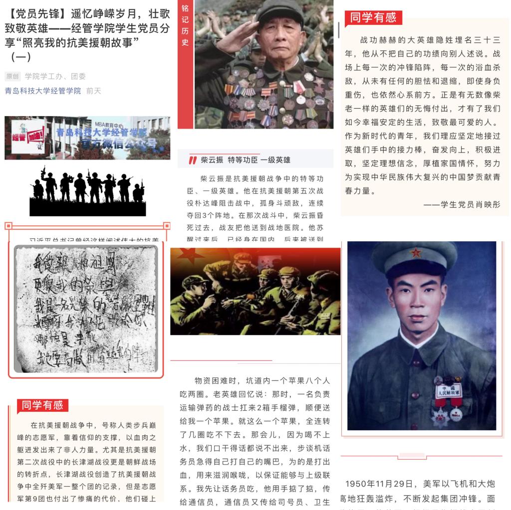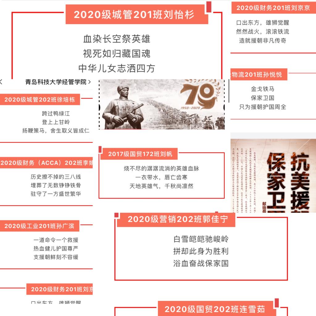值中国人民志愿军抗美援朝出国作战70周年之际,组织广大学子系统开展了“铭记伟大胜利,砥砺青年担当”主题教育活动。