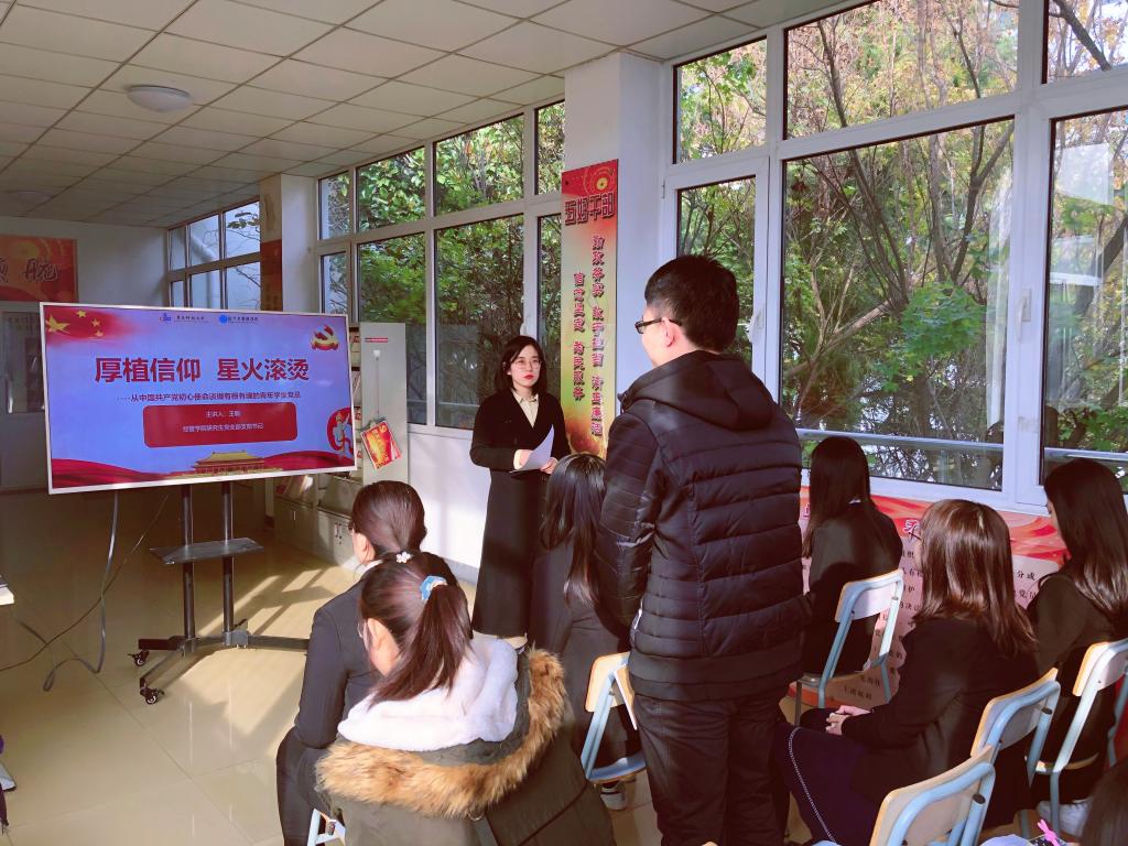 于经管楼党建活动室举行“厚植信仰,星火滚烫”专题党课及“诵读红色经典,传承红色精神”主题朗读活动。