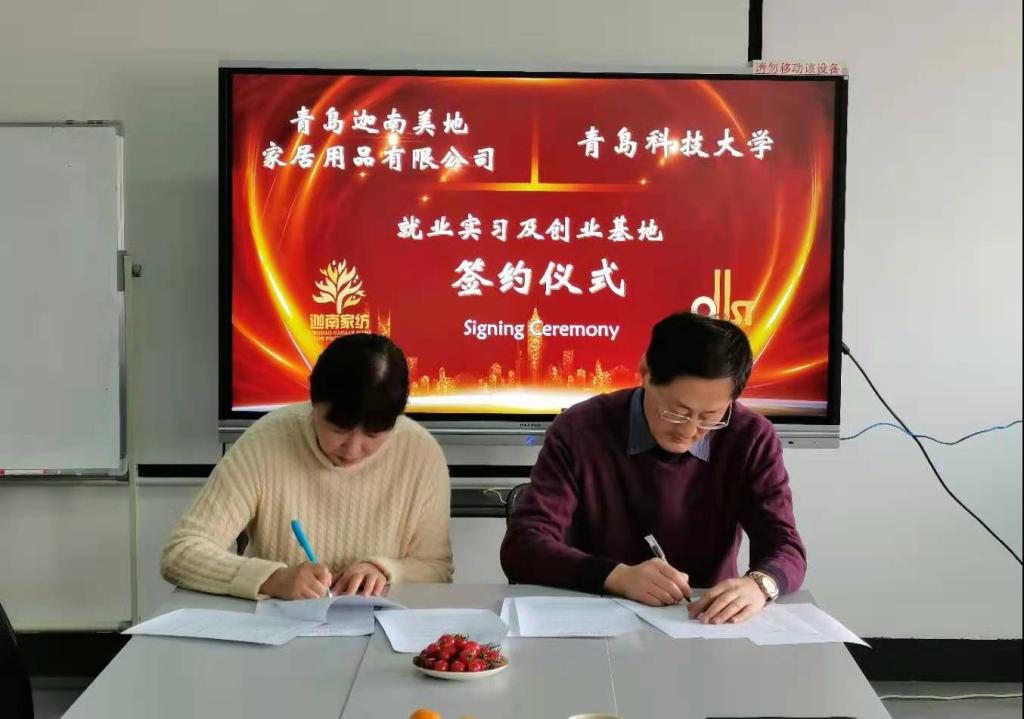 与青岛迦南美地家居用品有限公司(以下简称迦南美地)实习基地签约挂牌仪式在迦南美地综合会议室举行。出席签约仪式的有迦南美地总经理周晓辉女士及单位负责人,韦德国际