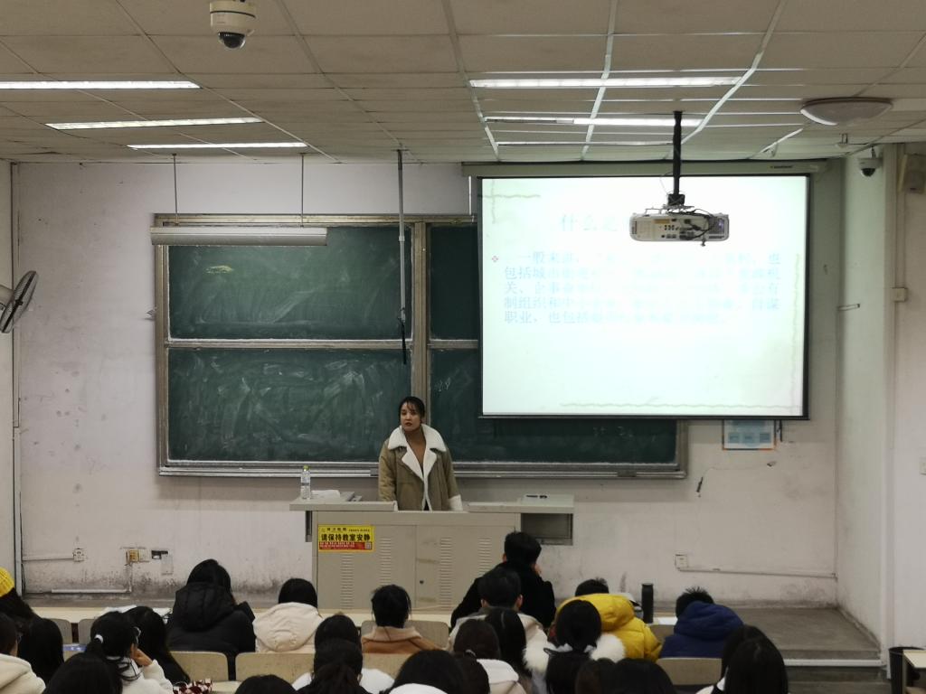 随后,张鸣首先以“毕业生就业的多重选择”为题,普及了基层就业的相关知识,分别就选拔条件、选拔时间、工作内容和福利待遇等方面重点讲解了大学生应征入伍、村官、特岗教师和西部计划志愿者四类就业途径。并着重强调了就业安全的问题,包括如何辨别虚假公司、虚假信息,避免无证据解聘、口头承诺、兼职刷单、传销等问题,并为同学们推荐了空中双选会、青鸟计划等招聘信息的获取途径。最后,她强调了疫情防控常态化形式下今日校园每日填报和青年大学习一周一学的重要性,提醒同学们提高自主意识,将防疫安全工作贯彻到底。