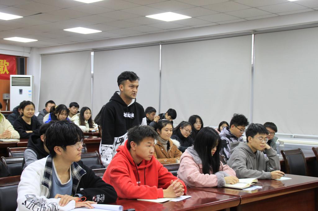 王帅强调,习近平在全国教育大会上曾指出:“坚持中国特色社会主义教育发展道路,培养德智体美劳全面发展的社会主义建设者和接班人。”作为新时代的青年学子,要注重发展的全面性,要在坚定理想信念上下功夫,要在厚植爱国主义情怀上下功夫,要在加强品德修养上下功夫,要在增长知识见识上下功夫,要在培养奋斗精神上下功夫,要在增强综合素质上下功夫。他从“五个驱动”工作思路出发,分别从科技创新、职业发展、志愿服务、骨干培养等方面为学生们做出详细的剖析,鼓励同学们不负韶华,学业为重,培养创新意识,积极投身志愿服务和体育活动,做有理想、有本领、有担当的新时代大学生。同时学校会尽可能地帮助同学们解决生活及学习当中的困难,为同学们创建舒适的校园,营造良好的学习氛围。