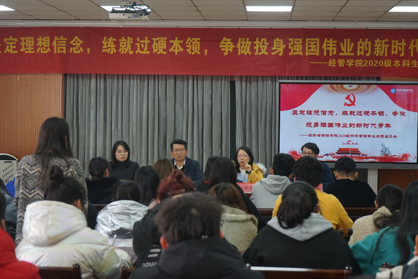 2020级物流管理专业期末交流会于经管楼504会议室举行,党委(校长)办公室副主任步德胜出席座谈会并与同学们亲切交流。2020级物流管理专业班主任王艳婷、2020级辅导员及城市管理专业全体同学参加,座谈会由2020级辅导员付凯主持。
