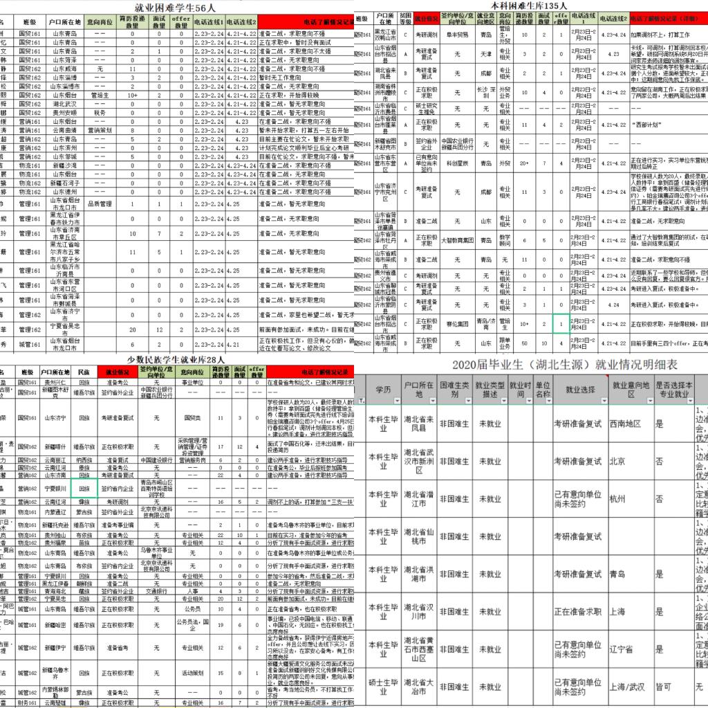 毕业生就业工作实施办法》,2020年自筹15万资金用于毕业生就业工作,将“学生就业”纳入各系、各部门工作考核,落实“一师一责”、“一生一策”。在疫情不能返校的背景下,辅导员电话连线学生2440余次,建立了631名学生的动态就业台账,实时追踪,精准掌握,在政策、指导、岗位多方面给予毕业生大力支持。