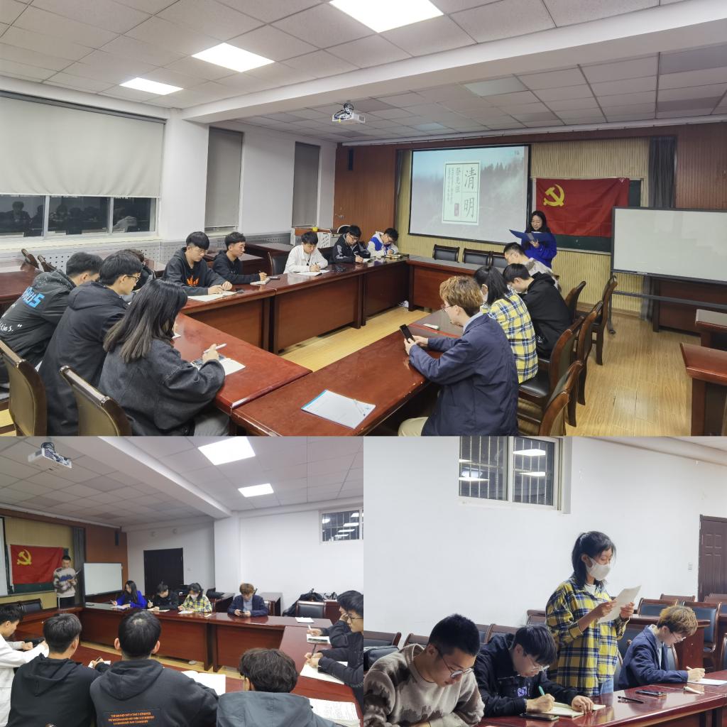 学生会各部门于经管楼419举行了清明节座谈会,深入学习革命英烈事迹,讴歌英雄,致敬英雄。实践部副部长周博翔主持座谈会。他提出,我们要始终铭记那些为了争取民族解放,为了维护社会安定而献出宝贵生命的英雄们,要饮水思源、不忘来路,致敬先烈事迹,继承先烈遗志,为未来的美好生活共同奋斗。实践部副部长张洁发言并和干事们进行互动,询问清明来临之际对那些百年来为新中国成立和社会主义建设事业捐躯的英烈想要说的话,干事们表达了对于先烈们的缅怀,对比了在当今国际形势那些战乱的国家,感叹幸福生活的来之不易。