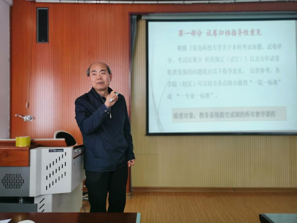 首先,张志耀介绍了学校关于试卷归档方面的指导性意见。第一,在阅卷方面,教师应根据学校要求规范阅卷,阅卷结束后应进行复核,实验、论文、大作业、绘画等考核方式阅卷,应有评分及相对应评语。第二,着重指出阅卷中容易出错的地方:电子材料缺少学生答卷、试卷缺批改痕迹、大题缺少得分、批阅修改处缺少签字、得分与评分标准不符等。