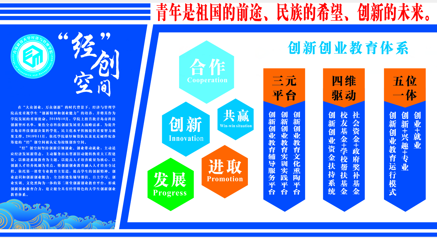 荣获“创青春”全国铜奖1项,“创青春”MBA专项赛全国铜奖1项。“三创赛”全国一等奖1项、二等奖2项、最佳创新奖1项,山东省“创青春”金奖1项,山东省“挑战杯”三等奖3项,累计获批国家级大学生创新创业立项3项,省级大学生创新创业立项4项,校级大学生创新创业立项40项。在学校2019学科竞赛排位前10名的专业中,韦德国际