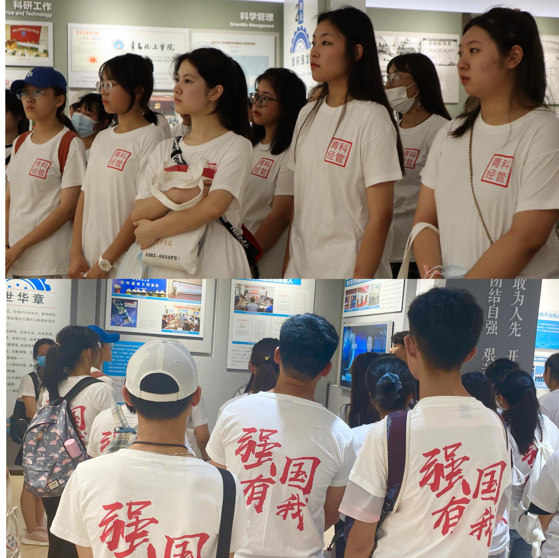 统一配发印有“强国有我”的文化衫井然有序地进入校史馆内参观。校史馆工作人员早就准备就绪,热情接待前来参观的同学,并详细认真地向同学们介绍了青岛科技大学的历史沿革和辉煌成就。同学们在校史馆讲解员的带领下,了解了每个展示单元背后蕴藏着的故事。参观完校史馆,同学们对学校的整个发展历程有了详细的了解,他们的脸上也流露出对学校的敬仰、自豪之情。