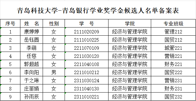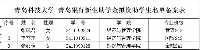 【公示】韦德国际 2024年度青岛银行奖助学金名单公示