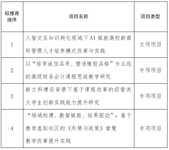 根据教务处《关于开展2025年度校级本科教学改革研究项目和专项项目申报及2024年度项目结题工作的通知》的相关要求,韦德国际 开展了2025年度校级教改项目立项申报推荐工作,经专家评审,推荐名单如下,公示期3天,反馈电话88958952。