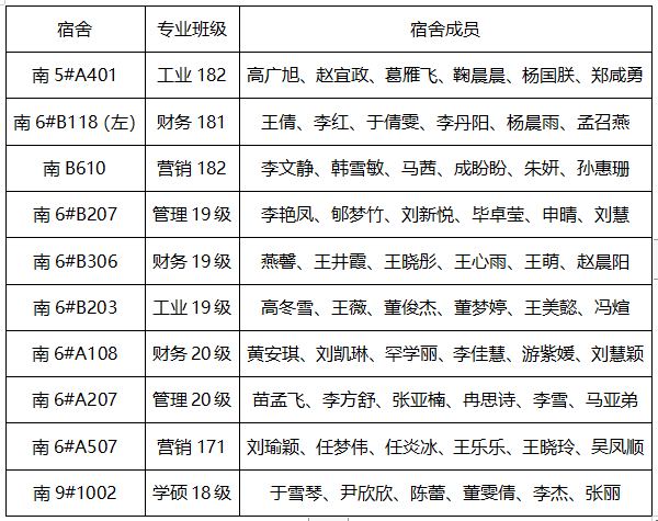 结合实际情况,于2021年4月开展第一届“经管领跑宿舍”评选活动,综合申报宿舍舍风建设、学风建设、内务卫生、安全秩序、遵章守纪和文化建设等方面,经研究决定,特授予南5#A401等10个宿舍“经管领跑宿舍”荣誉称号。现将评选结果予以公示(详见附件),公示期为3个工作日,公示时间2021年4月23日-2021年4月27日。