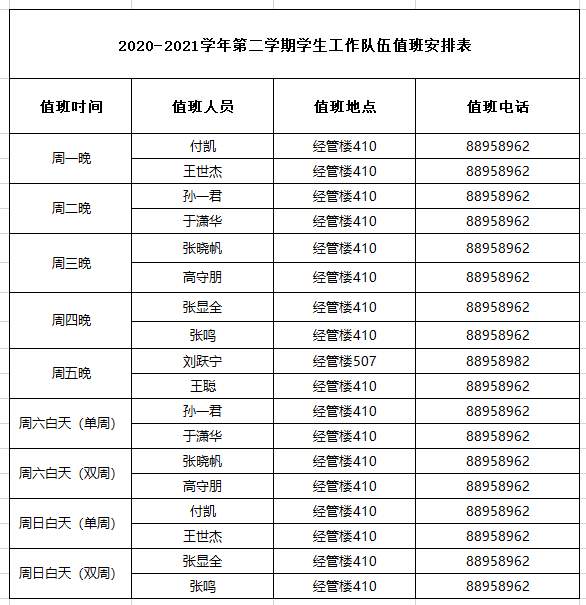 韦德国际 学工办(团委)常态化值班安排表